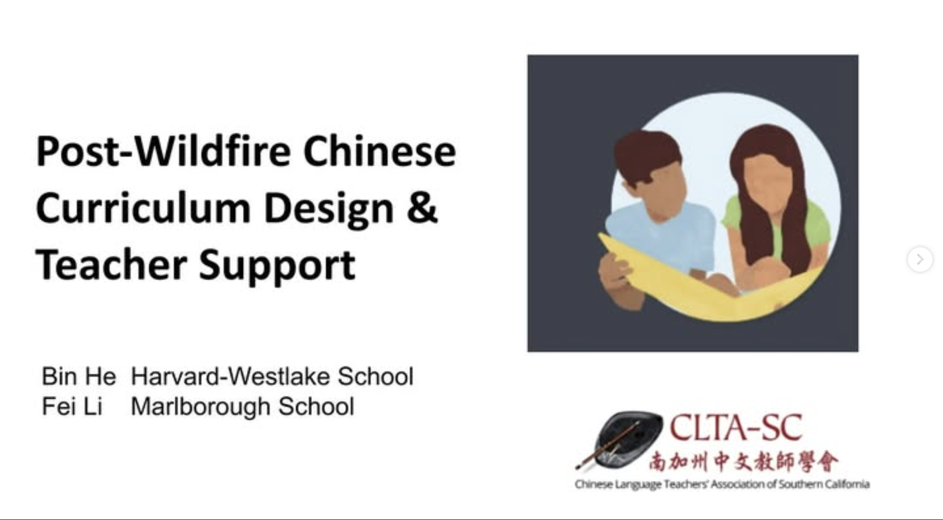 On January 15, 2025, the Chinese Language Teachers Association of Southern California (CLTA-SC) successfully held a Post-Wildfire Chinese Teaching and Support Sharing Session, attracting numerous public and private school Chinese teachers. The event featured presentations by teachers He Bin from Harvard-Westlake School and Li Fei from Marlborough School, who shared their experiences on course design, classroom activities, and mental health support. Participants found the session valuable, as it provided practical teaching suggestions and inspiration for future classroom designs. A significant discussion focused on designing cultural lessons for the Chinese New Year in the context of post-wildfire recovery, emphasizing the importance of understanding and experiencing traditional Chinese culture while considering students‘ mental well-being. Teachers expressed deep gratitude towards CLTA-SC for providing timely support and fostering a sense of community among Chinese educators.